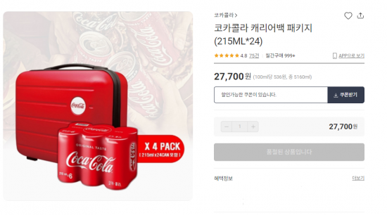 이 제품은 215mL 콜라 24캔과 스티커를 포함한 미니 캐리어백 패키지로, 판매가 시작되자마자 빠르게 품절됐다. 온라인 몰 품절은 물론이고, 매장마다 재고가 다른 대형마트에도 사려는 이들이 몰리며 품절 사태도 일어났다.