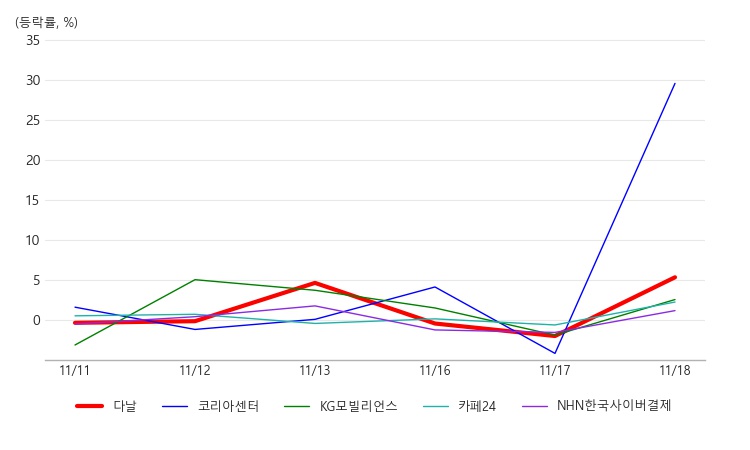 [그래프] 전자결제(전자화폐) 테마 주요 종목 등락률
