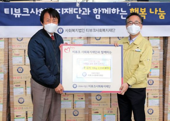 또, 지난 19~24일에는 어려운 이웃들을 위해 대한예수교장로회 시흥교회에서 오리털패딩조끼 2000벌(2000만원 상당), 서울대성라이온스클럽에서 보행용 지팡이 150개(300만원 상당), 에프에이테크에서 방역용 고글 500개(500만원 상당), 주경야독에서 쌀 1760㎏(510만원 상당), 티뷰크사회복지재단에서 김치 2만5500㎏(2억1000만원 상당)을 기부했다.