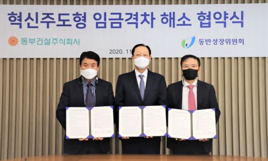 동부건설은 26일 서울 강남구 동부건설 본사에서 동반성장위원회, 협력사 대표와 상생 문화 활성화 및 임금격차 해소를 위한 협약을 체결했다고 27일 밝혔다.