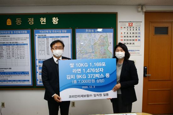 코리안리재보험 이화동에 쌀, 라면, 김치 등 총 7000만 원 상당 물품 전달