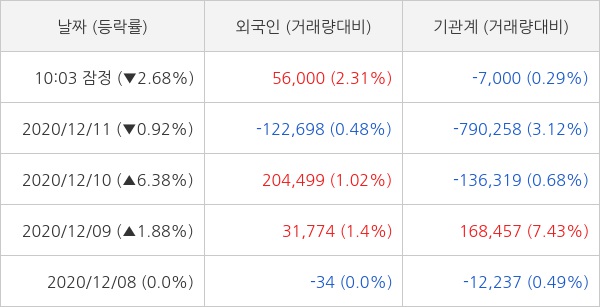 오늘 외국인은 두산인프라코어를 5만 6000주 순매수 하고 기관은 7000주 순매도 하는 것으로 잠정 집계되고 있다. 최근 5일 동안 개인 투자자들은 87만 4015주 순매수 했고, 외국인과 기관은 각각 11만 6000주 순매도, 80만 2665주 순매도 했다.