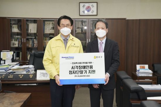 [아시아경제 박종일 기자] 종로구(구청장 김영종)는 23일 한세예스24문화재단과 함께하는 '점자단말기 기부품 전달식'을 개최, 시각 장애인들의 독서 환경 개선을 위해 뜻을 모을 것을 약속했다.