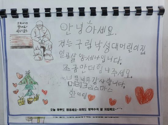 관악구 임시선별진료소 의료진과 직원 노고에 감사 기부 이어져 관악구립 낙성대어린이집 원아 손편지
