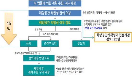 해양공간 적합성협의는 중앙행정기관이나 지방자치단체에서 해양관광단지·항만·어항·해양에너지 개발 등 각종 해양공간의 이용·개발계획을 수립하거나 지구·지역을 지정할 때 해수부와 사전에 협의하는 제도다. 해양공간의 난개발을 막고 해양생태계를 보전하기 위해 2019년 4월부터 시행됐다.