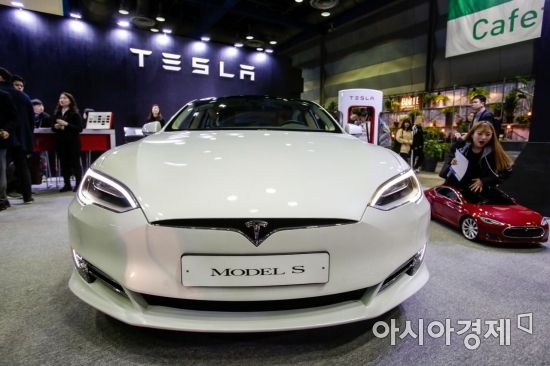 12일 서울 강남구 코엑스에서 열린 'EV 트렌드 코리아 2018'에서 테슬라 MODEL S 가 공개되고 있다./강진형 기자aymsdream@