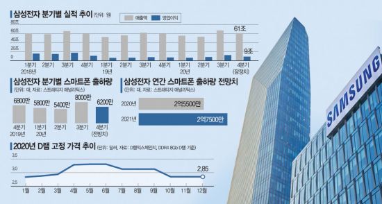 다만 4분기 실적은 어닝 서프라이즈였던 3분기에 비해서는 둔화했다. 반도체의 경우 지난해 전반적인 시황은 양호했으나 4분기 들어 서버용 D램 등 메모리 반도체 가격 하락과 원·달러 환율 급락으로 3분기보다 영업이익이 1조원 이상 줄었다.