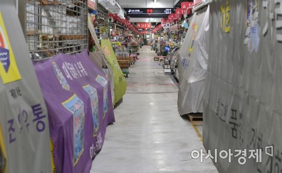 시장 상인 4명이 코로나19 확진 판정을 받은 서울 송파구 가락농수산물도매시장 가락몰이 10일 폐쇄되고 있다./윤동주 기자 doso7@