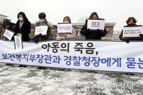 탁틴내일, 한국미혼모지원네트워크 등 아동인권단체가 11일 서울 여의도 국회 정문 앞에서 기자회견을 열고 입양아동 학대 사망 사건 '정인이 사건'과 관련해 정부의 대책을 촉구하고 있다. /문호남 기자 munonam@