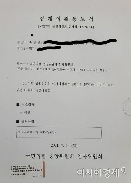 국민의힘 관계자는 아시아경제와 통화에서 "손창현 씨 해임 사실이 맞다"면서 "사회적으로 여러 물의를 일으켰다. 징계 결정을 다시 논의하거나 하는 재심은 없다"고 밝혔다.