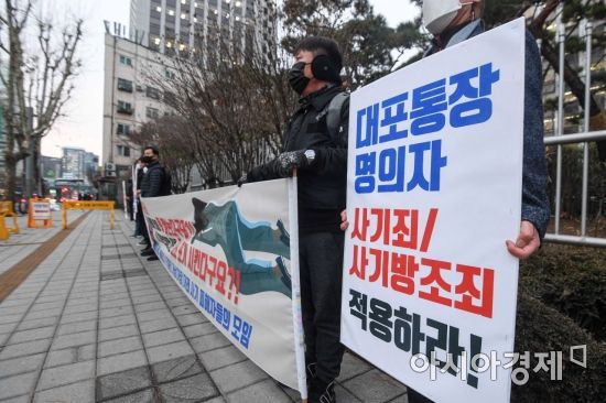 25일 서울 서대문구 경찰청 앞에서 사이버금융사기피해자모임 소속 관계자들이 사이버투자사기 전담팀 구성 및 적극 수사를 촉구하는 집회를 하고 있다./강진형 기자aymsdream@
