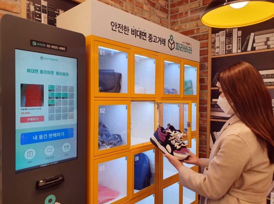 [아시아경제 임춘한 기자] 이마트24는 28일 비대면 중고거래 서비스 업체 ‘파라바라(parabara)’와 손잡고 주택가·오피스가에 위치한 매장 18곳에 중고거래 머신(파라박스)을 도입해 테스트 운영을 시작한다고 밝혔다. 파라바라는 오프라인 기반의 중고 거래플랫폼이다.