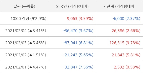 오늘 외국인은 현대글로비스를 9063주 순매수 하고 기관은 6000주 순매도 하는 것으로 잠정 집계되고 있다. 최근 5일 동안 개인 투자자들은 5만 8677주 순매수 했고, 외국인과 기관은 각각 21만 4977주 순매도, 17만 588주 순매수 했다.