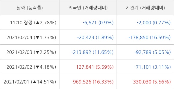 오늘 외국인은 셀트리온을 6621주 순매도 하고 기관은 2000주 순매도 하는 것으로 잠정 집계되고 있다. 최근 5일 동안 개인 투자자들은 87만 1446주 순매도 했고, 외국인과 기관은 각각 93만 705주 순매수, 7959주 순매수 했다.