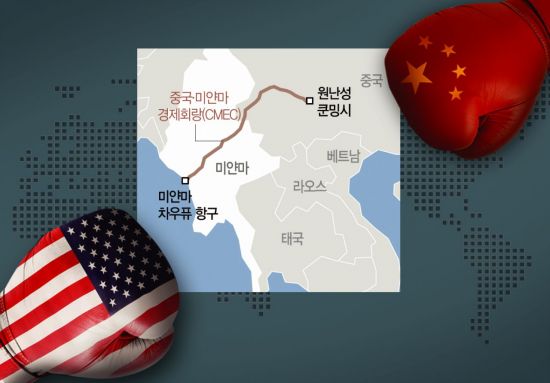 중국은 2015년부터 CMEC사업을 본격화해왔다. CMEC는 인도양과 마주한 미얀마 항구 도시 차우퓨에 현대식 항만을 준설하고 중국 윈난성 쿤밍까지 약 870㎞ 길이의 도로와 석유·천연가스 파이프라인 등을 연결하는 사업으로 2015년 72억달러(약 8조900억원) 규모로 먼저 추진됐다.