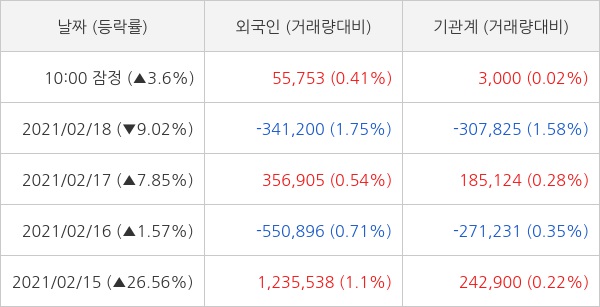 오늘 외국인은 SFA반도체를 5만 5753주 순매수 하고 기관은 3000주 순매수 하는 것으로 잠정 집계되고 있다. 최근 5일 동안 개인 투자자들은 44만 2730주 순매도 했고, 외국인과 기관은 각각 69만 9211주 순매수, 13만 4457주 순매도 했다.