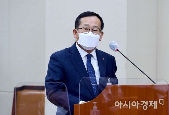 박찬복 롯데글로벌로지스 대표가 22일 국회에서 열린 환경노동위원회 산업재해관련 청문회에출석, 의원들 질의에 답변하고 있다./윤동주 기자 doso7@
