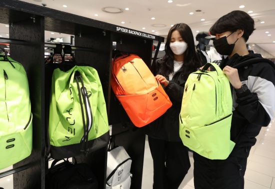 [아시아경제 호남취재본부 신동호 기자] 롯데백화점 광주점 5층 스파이더매장에서 신학기를 맞아 개성 넘치는 네온컬러의 가방을 선보이고 있다. 네온컬러는 선명한 노랑, 분홍의 채도와 명도가 높은 색상을 통틀어 이르는 색으로 단조롭지 않고 개성을 표현하기에 좋은 아이템 중 하나다.