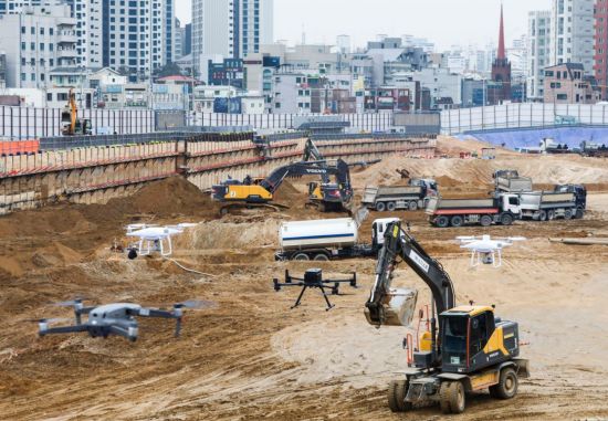 2018년 도입된 드론 기술은 내재화가 목표다. 내년까지 촬영 인력 없이 사전에 입력된 일정에 따라 드론이 자동으로 스스로 비행하고 배터리 충전과 사진 업로드까지 가능하도록 준비중이다. DL이앤씨는 토공사 작업에 드론으로 고해상 사진촬영을 한 후 3차원 데이터 결과물을 도출해 이용하고 있다. 협력업체 직원들도 3차원 지도 위에 구현된 현장 상황을 직관적으로 쉽게 확인할 수 있어 작업효율이 높아졌다.