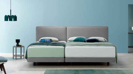 헤드보드가 63㎜로 슬림해 좁은 침실 공간도 효과적으로 활용할 수 있다. 헤드보드 윗면은 사용자의 편의를 위해 간단한 소품이나 전자기기 등을 올려둘 수 있도록 평면으로 만들어졌다. 또한 액체를 흡수하지 않는 발수코팅 패브릭이 사용돼 각종 오염으로부터 제품을 지켜주고 관리가 용이하다. 올해 트렌드 색깔인 ‘얼티메이트 그레이’ 톤이 적용됐으며 모서리를 둥글게 처리해 차분하고 단정한 느낌을 준다.