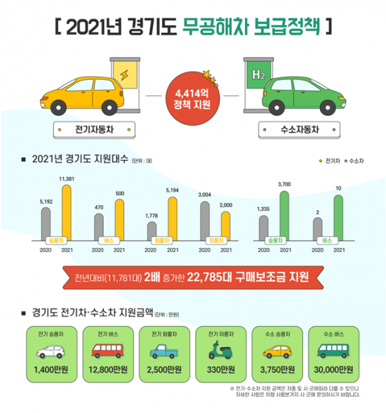[아시아경제(수원)=이영규 기자] 경기도가 올해 전기차ㆍ수소차 등 무공해 차량 구매 보조금으로 총 4414억원을 지원한다.