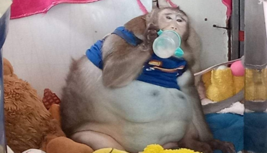 [아시아경제 김봉주 기자] 사람들이 준 음식물을 먹고 몸무게가 평균 원숭이보다 3배 이상 늘어난 원숭이가 눈길을 끌고 있다.