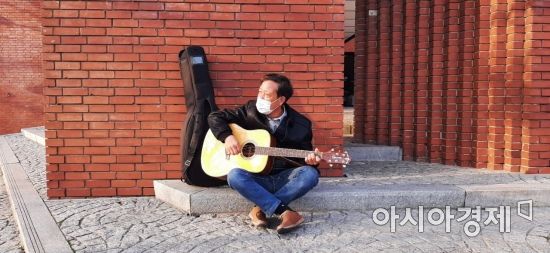 가수 윤효상 씨가 서울 대학로 마로니에 공원을 찾아 기타 연주를 하고 있다. 안 씨는 개그맨 김철민 씨와 듀엣으로 이곳에서 거리 공연만 31년째 하고 있다. 올해는 공연 30주년을 기념하는 공연을 계획하고 있다. 사진=한승곤 기자 hsg@asiae.co.kr