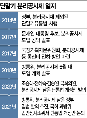 핵심 내용은 제조사 지원금과 이통사 지원금을 나눠서 공시하는 분리공시제다. 현재 제조사·이통사 지원금은 공개되지 않은 채 합쳐져 이통사 유통망 장려금과 고객향 지원금으로 나뉘는데, 개별 지원금을 밝혀 제조사 지원금 경쟁을 유도한다는 취지다. 한상혁 방통위원장도 올 초 국회에서 "단말기 분리공시제 도입이 타당하다"며 도입 의지를 밝혔다.