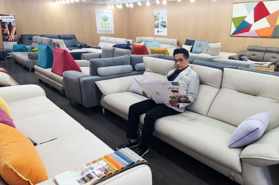 김 대표가 가장 중요하게 생각하는 것은 기술력과 소재다. 가죽 제품의 경우 두꺼운 천연 통가죽을 쓴다. 저렴한 소파는 통가죽이나 면피가죽 대신 독고가죽(면피가 아닌 내피를 필름으로 코팅한 가죽)을 사용한다. 타사 제품 가죽 두께가 1.3~1.5㎜라면 트루퍼니처 제품은 2.0~2.2㎜ 수준이다. 부자재도 겨울이면 딱딱해지는 라텍스 대신 친환경 고급 소재로 알려진 블루텍스를 활용한다. 원자재 가격이 경쟁사 대비 7만~10만원 정도 더 드는 이유다. 이외 소파 가죽 뒷면에 6㎜ 본딩 스펀지와 망사 층을 붙이는 방식을 적용해 가죽 늘어남을 방지한다.