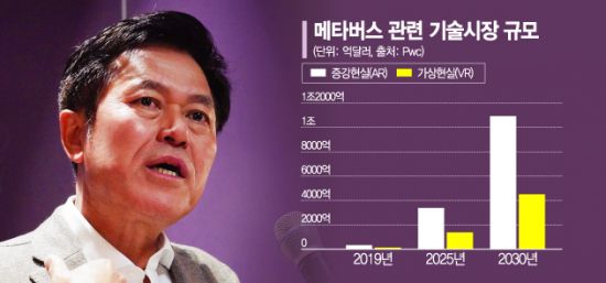 시장조사업체 스트래티지애널리틱스(SA)에 따르면 메타버스시장은 올해부터 급격히 성장해 2025년 관련 매출이 2800억달러(약 315조원)에 달할 것으로 추산된다. PwC는 2030년 증강현실(AR)시장은 1조924억달러, 가상현실(VR)시장은 4505억달러까지 커질 것으로 내다봤다.