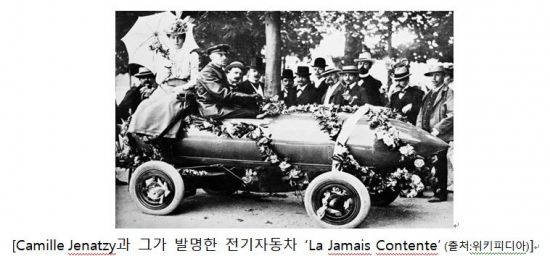 전기자동차에 대한 연구는 거듭 발전해, 1899년 벨기에의 카미유 제나치(Camille Jenatzy)는 '라 자메 콩탕트(La Jamais Contente·결코 만족하지 않는다.)'라는 이름의 전기자동차를 개발해 처음으로 100km/h 가 넘는 속도로 달리기도 했습니다.