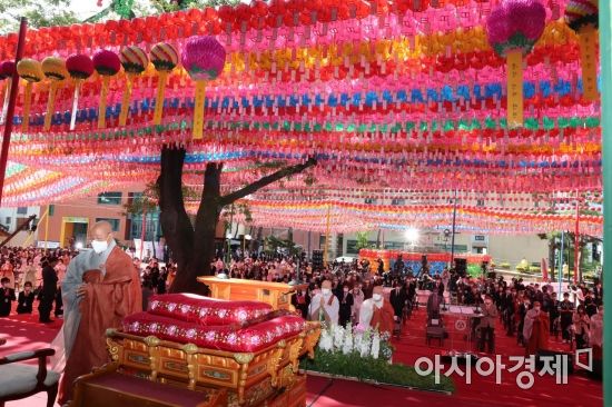 석가탄신일 조계사·봉은사서 소란행위…사찰 앞에서 찬송가 19일 오전 서울 종로구 조계사에서 불기 2565년 부처님오신날 봉축법요식이 열리고 있다./김현민 기자 kimhyun81@