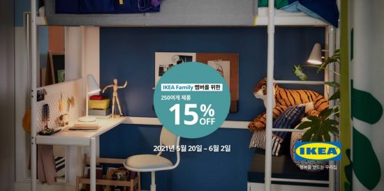 이번 할인 행사는 지난달부터 진행되고 있는 500여개 침실 및 거실 제품 할인 행사에서 보여준 고객들의 성원에 화답하고자 마련했다. 이케아 패밀리 멤버를 대상으로 하며, 약 250 여개의 추가적인 거실 및 침실 홈퍼니싱 제품들을 15% 할인된 가격으로 제공함으로써 더 많은 사람에게 이케아 홈퍼니싱 솔루션 경험기회를 제공할 계획이다.