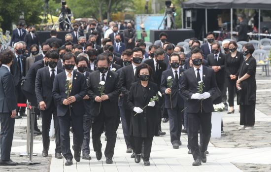 지난해에 이어 2년 연속 야권 정치인도 추도식에 참석했다. 국민의힘 김기현 원내대표 겸 당 대표 권한대행이 방문했다.