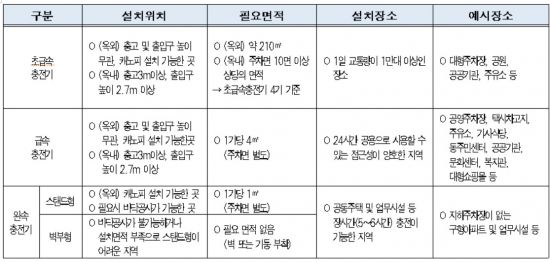 전기차 충전기에는 초급속, 급속, 완속, 과금형 콘센트 등이 있으며 이번 조사에는 초급속, 급속, 완속충전기를 중심으로 부지를 발굴할 계획이다.