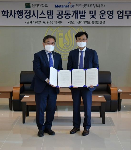 [아시아경제 영남취재본부 김용우 기자] 신라대학교(총장 김충석)가 학사행정시스템 개발과 기술 교류를 위해 메타넷대우정보(대표이사 정일)와 업무협약을 체결했다.