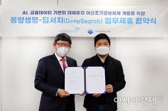 양사는 딥서치가 보유한 금융?기업?산업 관련 방대한 데이터와 분석 엔진에 동양생명이 자체 보유하고 있는 대체투자 평가 모델과 업무 노하우를 결합해 금융 빅데이터와 AI 기반의 대체투자 여신조기경보체계를 구축할 예정이다.