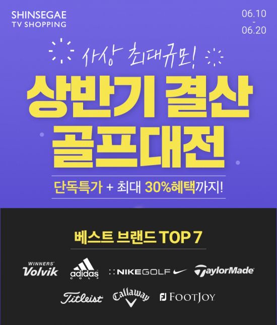 [아시아경제 임춘한 기자] 신세계TV쇼핑은 인기 골프 브랜드 상품을 최대 30% 할인가에 선보이는 ‘상반기 결산 골프대전’ 행사를 연다고 10일 밝혔다.