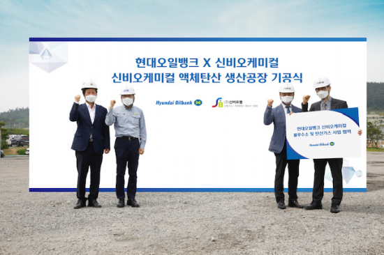 현대오일뱅크는 14일 충남 대죽 일반산업단지에서 국내 최대 액체 탄산 제조사인 신비오케미컬과 액체 탄산 생산 공장 기공식을 가졌다고 밝혔다. 기공식에는 정해원 현대오일뱅크 안전생산본부장과 홍지유 신비오케미컬 대표가 참석했다.