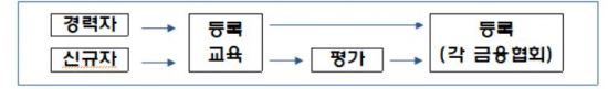신규 등록교육을 이수한 자를 대상으로 한 평가시험은 여신금융협회 교육연수원에서 다음달 6일부터 신청할 수 있으며, 해당시험의 합격자에게는 자격인증서가 발급된다. 첫 평가 시험일은 오는 8월 7일이다.