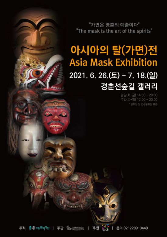 6월26일부터 7월18일까지 경춘선숲길 갤러리에서 누구나 무료 관람 가능... 한국, 일본, 중국, 인도, 몽골, 티벳 등 아시아 18개국 200여점의 탈 작품 전시