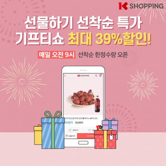K쇼핑은 지난 3월 선물하기 서비스를 선보인 이후 기프티쇼 특가 행사, 적립금 페이백 이벤트 등을 진행하는 등 다양한 혜택을 제공하고 있다. 최근 반값 페이백 프로모션 이후 선물하기 기능을 이용한 고객의 순주문금액이 약 3000% 이상 증가하는 등 가파른 성장세를 보이고 있다.