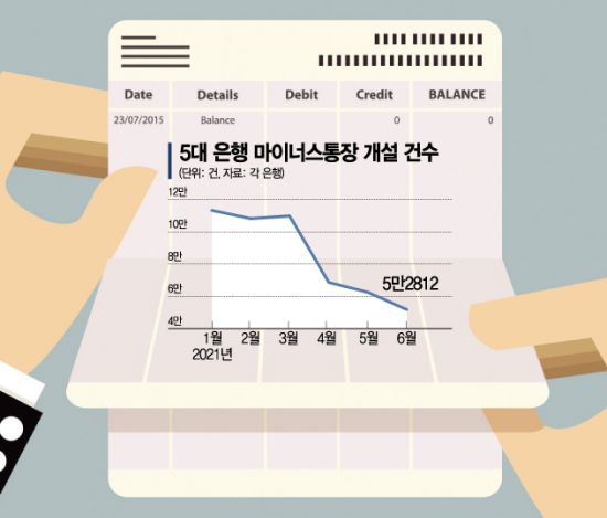 5일 금융권에 따르면 KB국민·신한·하나·우리·NH농협 등 5대 은행의 6월 마통 개설 건수는 5만2812건으로 지난 1월(11만3363건) 대비 53.4% 급감했다. 전월(6만2571건)대비로도 15.5% 줄었다.