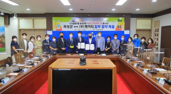 [아시아경제 호남취재본부 허선식 기자] 전남 곡성군(군수 유근기)은 지난 2일 ㈜KT(대표 구현모)와 디지털플랫폼 기반 고령자 건강관리서비스 선도를 위한 업무협약(MOU)을 체결했다고 5일 밝혔다.