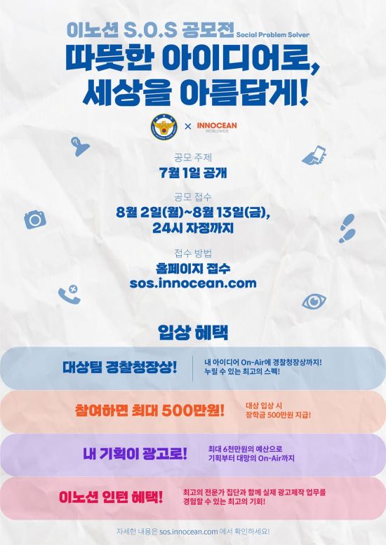 S.O.S 프로그램 아이디어 공모는 전공·지역·국적을 불문한 대학생(휴학생 포함) 및 대학원생을 대상으로 진행된다. 다음달 2일부터 8월 13일까지 과제물을 전용 사이트에 접수하면 참여 가능하다.