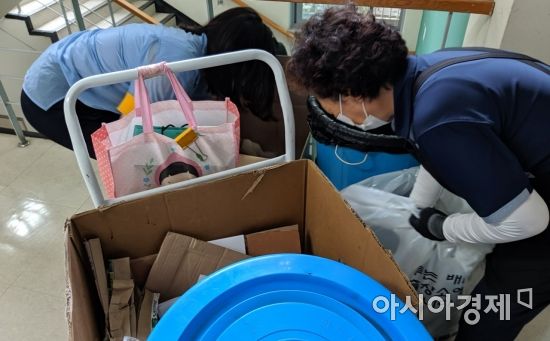 서울대 청소노동자 갑질 의혹과 관련해 정부는 '직장 내 괴롭힘'으로 보고 있다고 밝혔다. 통상적인 업무를 벗어난 부분이 있다는 게 이유다. 김서현 기자가 쓰레기 분리수거를 하고 있다. 사진=윤슬기 인턴기자 seul97@asiae.co.kr