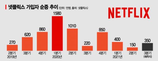 회사는 올 3분기 이 같은 추세를 깨고 가입자 수 증가세가 다시 가팔라질 것으로 낙관했다. 출시가 미뤄진 후속 시즌과 신규 콘텐츠들이 3~4분기에 새롭게 선보이면서 가입자 증가세가 회복될 것이라는 예상이다. 넷플릭스는 올 상반기 콘텐츠 투자에만 현금 80억달러 이상을 지출했다고 밝혔다. 팩트세트에 따르면 올 3분기에는 350만명의 신규 가입자가 추가될 것으로 예상했지만, 이는 투자자들의 예측치인 550만명보다 낮은 수치다.