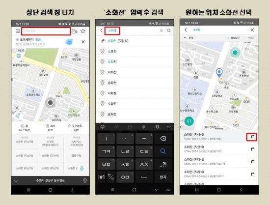 소화전 길 안내 서비스는 KT 내비게이션 정보기술에 경기도 소방용수시설 공공데이터 2만9442개를 탑재해 검색창에 소화전을 입력하면 주변 소화전 위치를 최단 거리순으로 한 눈에 파악할 수 있게 도와 준다.