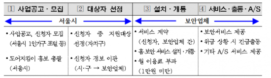 도어지킴이 지원사업은 9월부터 시작한다. 서울시나 자치구 홈페이지, 서울시 1인가구 포털에서 서비스와 신청방법을 공고한다. 지원대상은 만 18세 이상 서울 시민 중 임차주택에 거주하는 1인가구다. 성별 구분 없이 전체 1인가구를 대상으로 한다.
