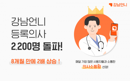 [아시아경제 김철현 기자] 미용의료 정보 플랫폼 강남언니를 운영하는 힐링페이퍼(대표 홍승일)는 앱에 참여하는 국내 의사가 2200명을 돌파했다고 24일 밝혔다.